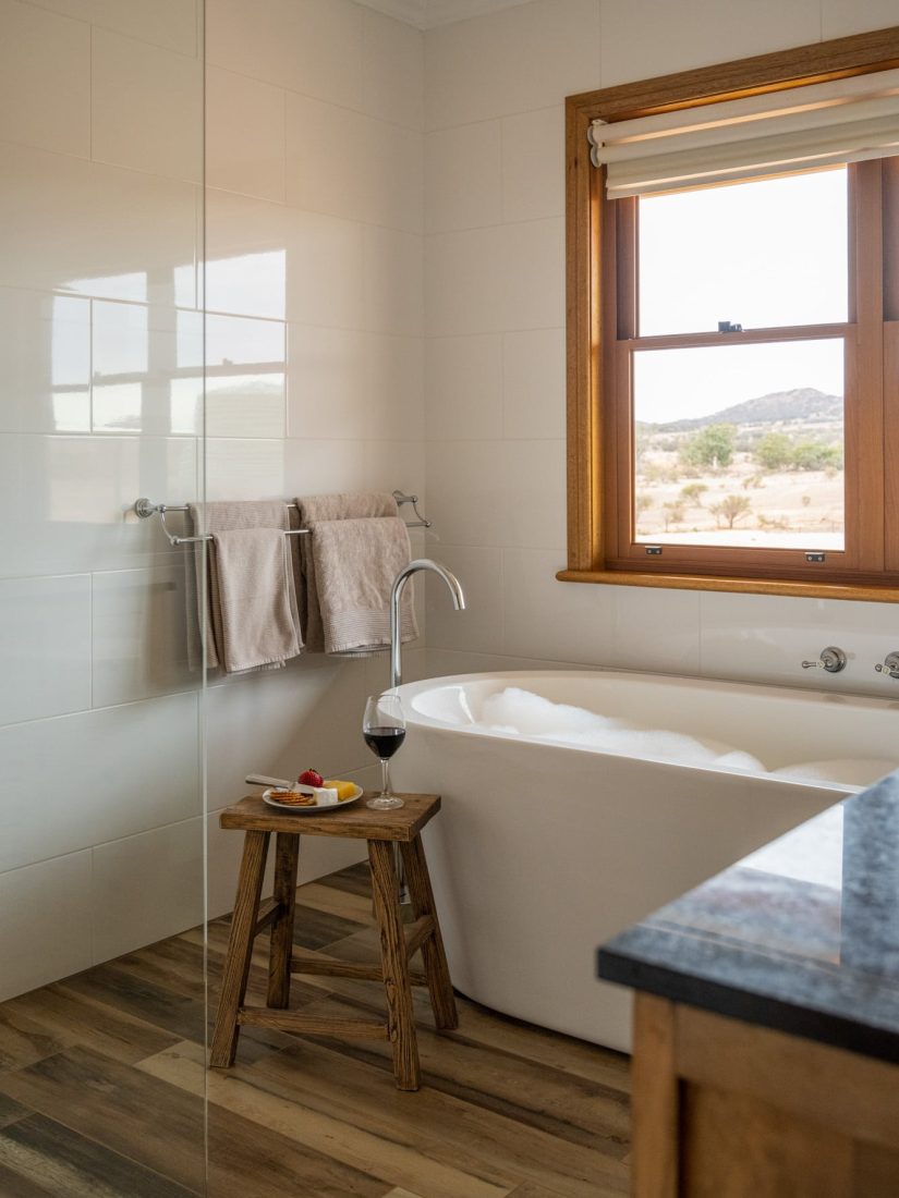 This boutique farm stay offers award-winning accommodation, convenient access to the Flinders Ranges, and one of the best bathtubs in South Australia.