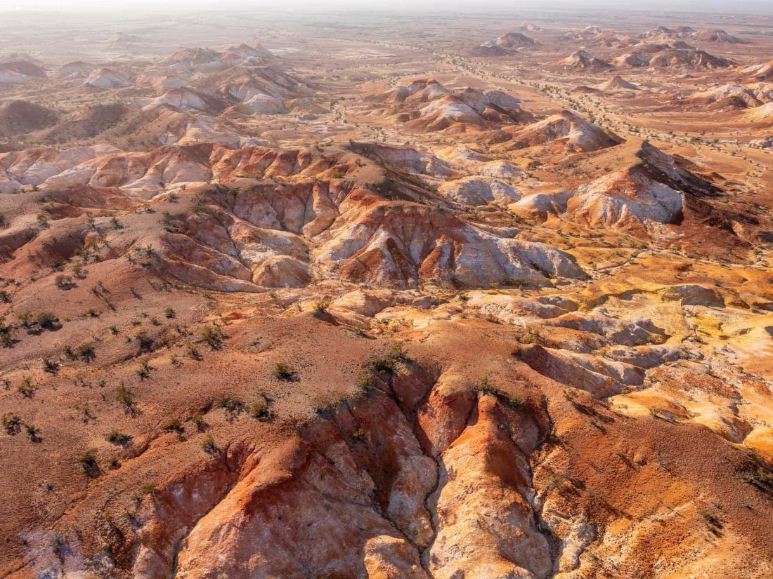 Take a scenic flight with Wrightsair to see the Anna Creek Painted Hills, the stunning rock formations in colours you would never have expected to find in Australia.